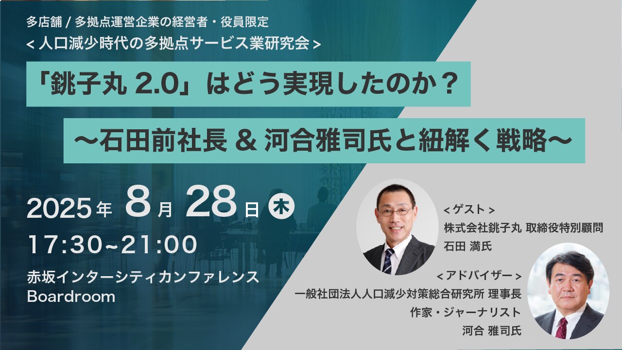 第1回となる今回は、ゲストにグルメ回転寿司チェーン「銚子丸」の代表取締役として「銚子丸2.0」を牽引し、過去最高益を記録する企業変革を実現した石田 満様に、実現のポイントや経営者としてのマインドを伺います。